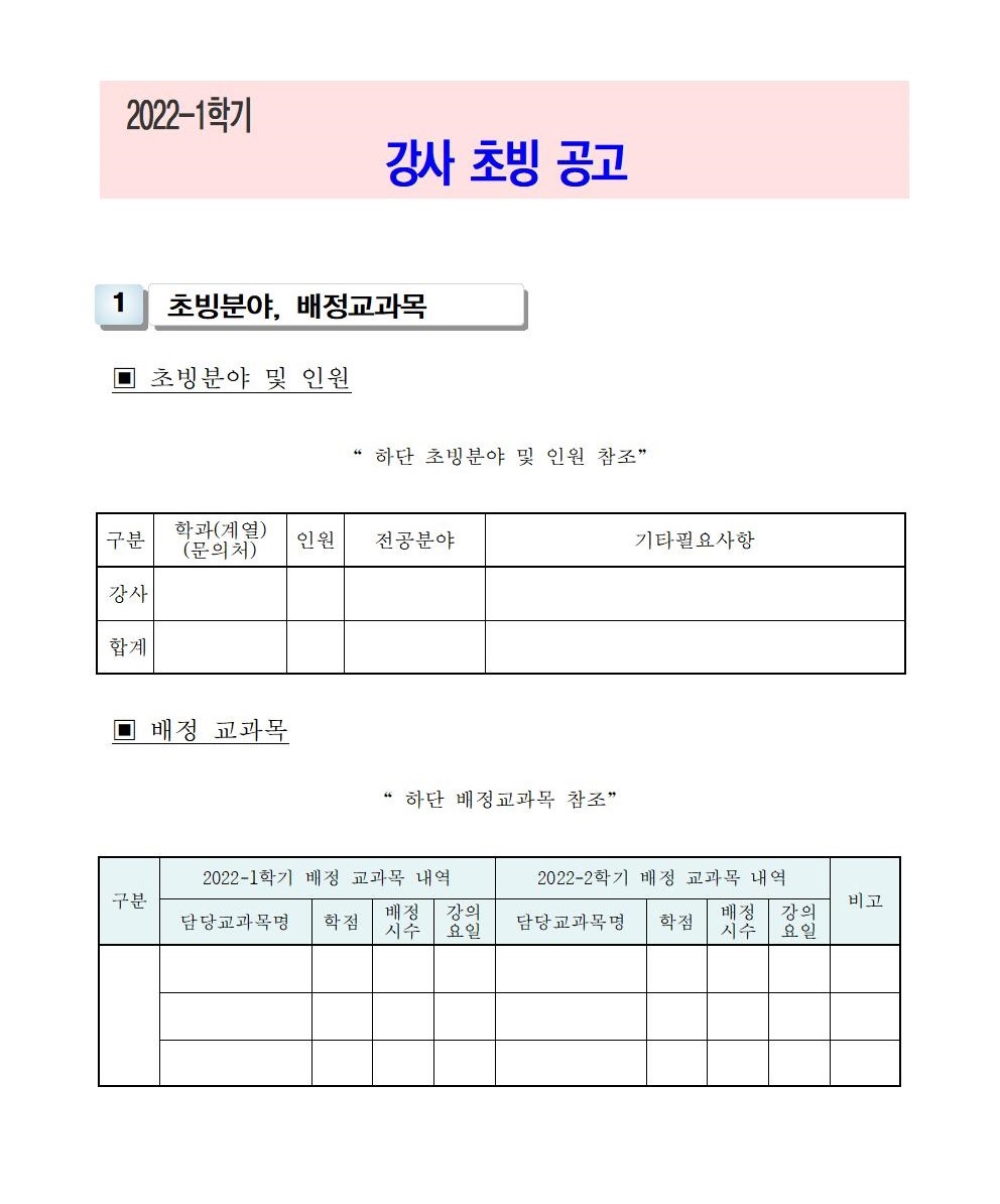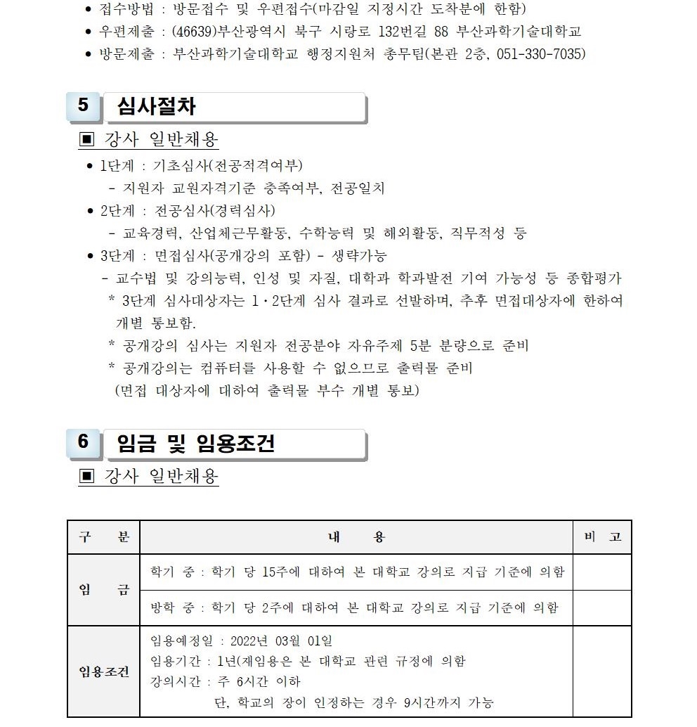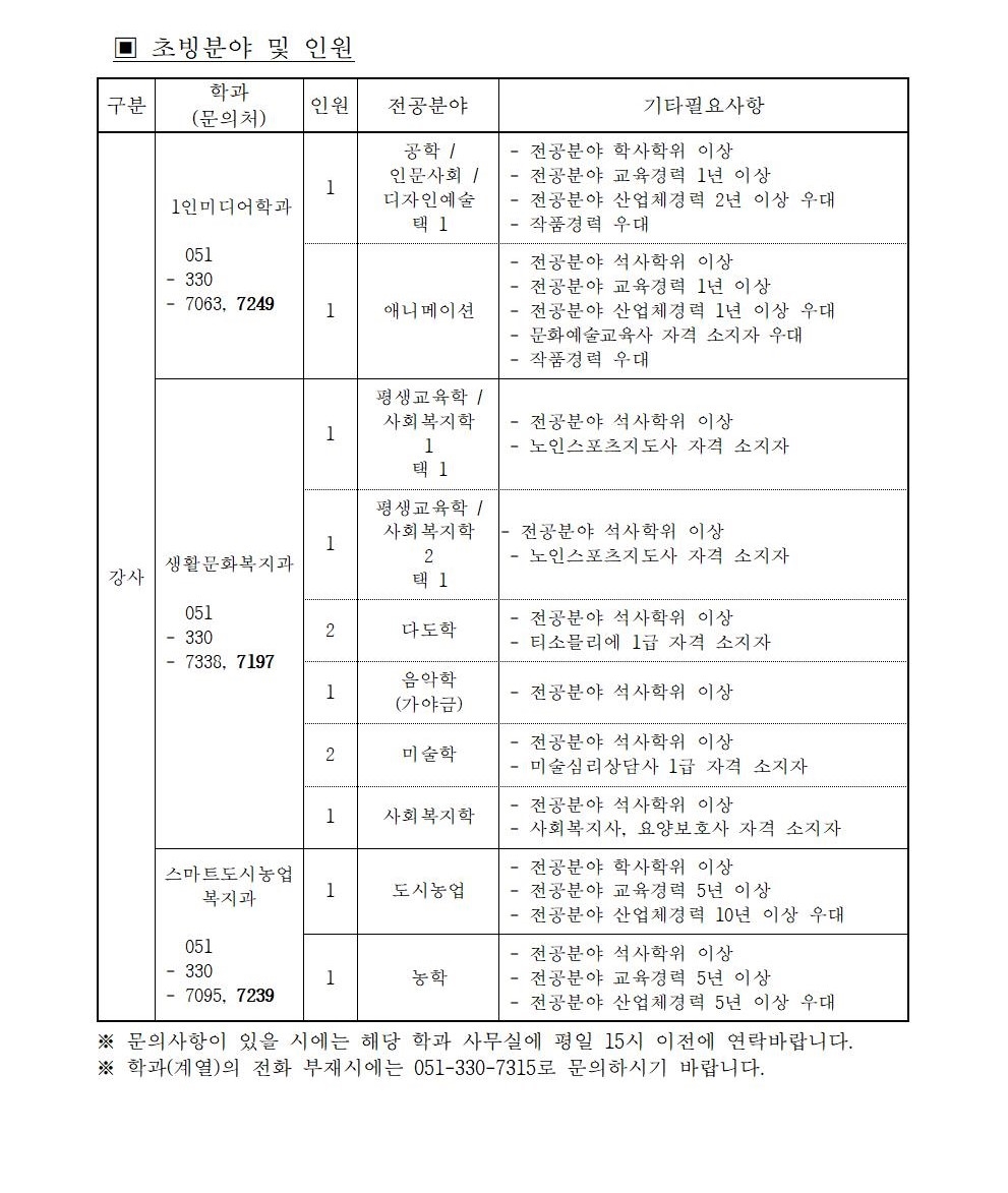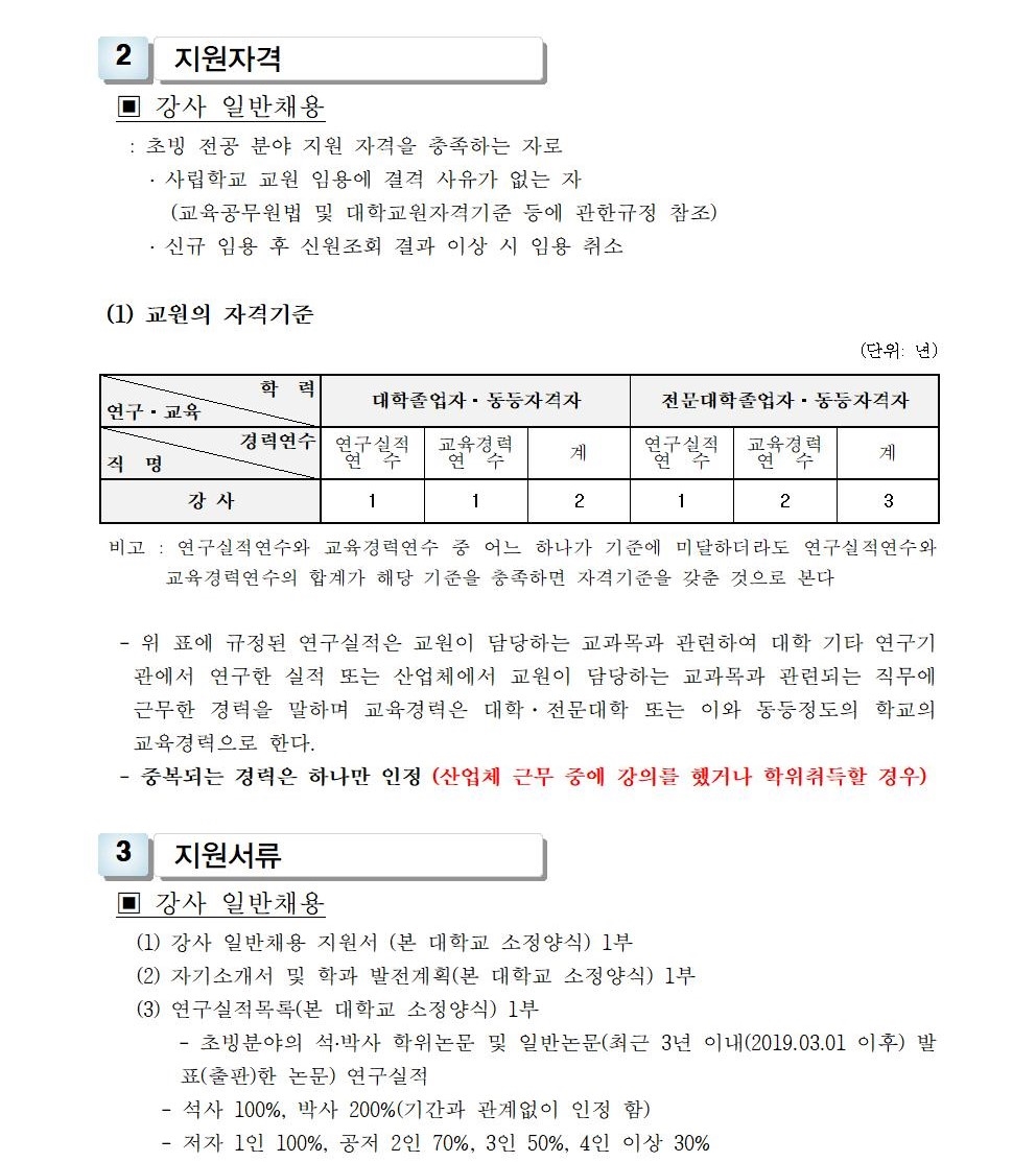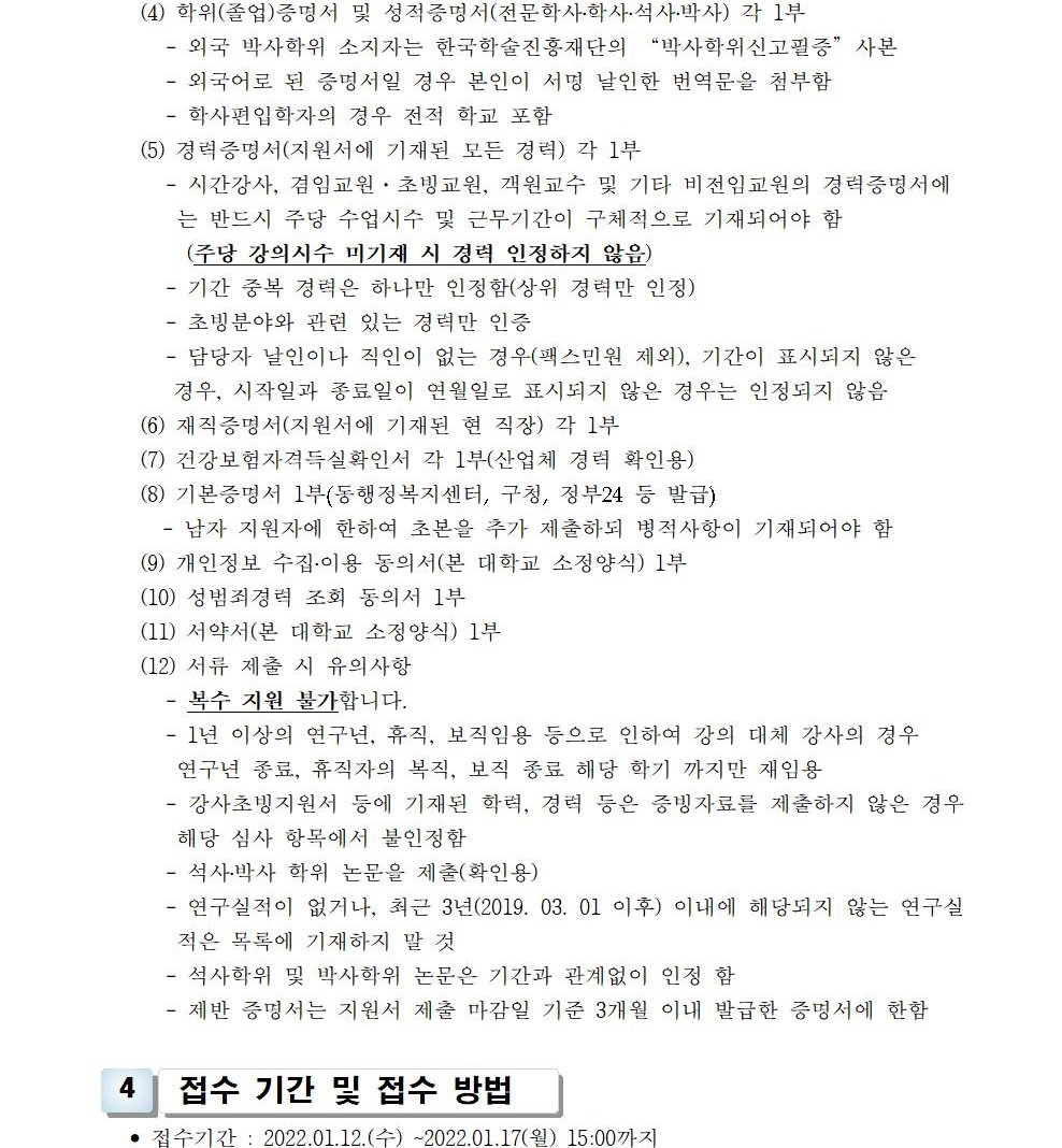 HOME > 기타 > 입찰/채용 입찰/채용 제목 [채용] 2022학년도 1학기 교원(강사) 초빙 공고 등록일 2022.01.07 09:28:45 작성자 행정지원처 첨부파일 1-1-5 강사 일반채용 구비서류.zip [54.31 KB]1-1-3-가-1. 강사신규임용계획(공고문).pdf [244.55 KB] 조회 2606 이전글 [채용] 2022학년도 1학기 비전임 교원(겸임교원) 초빙 공고 다음글 [입찰] 사회맞춤형 기자재(구강스캐너 등) 구입 입찰 목록 비밀글 비밀번호 입력 폼 비밀번호 입력 비밀번호를 입력하여 주세요. 관리자는 확인버튼만 누르시면 됩니다. 비밀번호 잘못된 비밀번호입니다. 비밀번호를 다시 입력해주세요. 확인