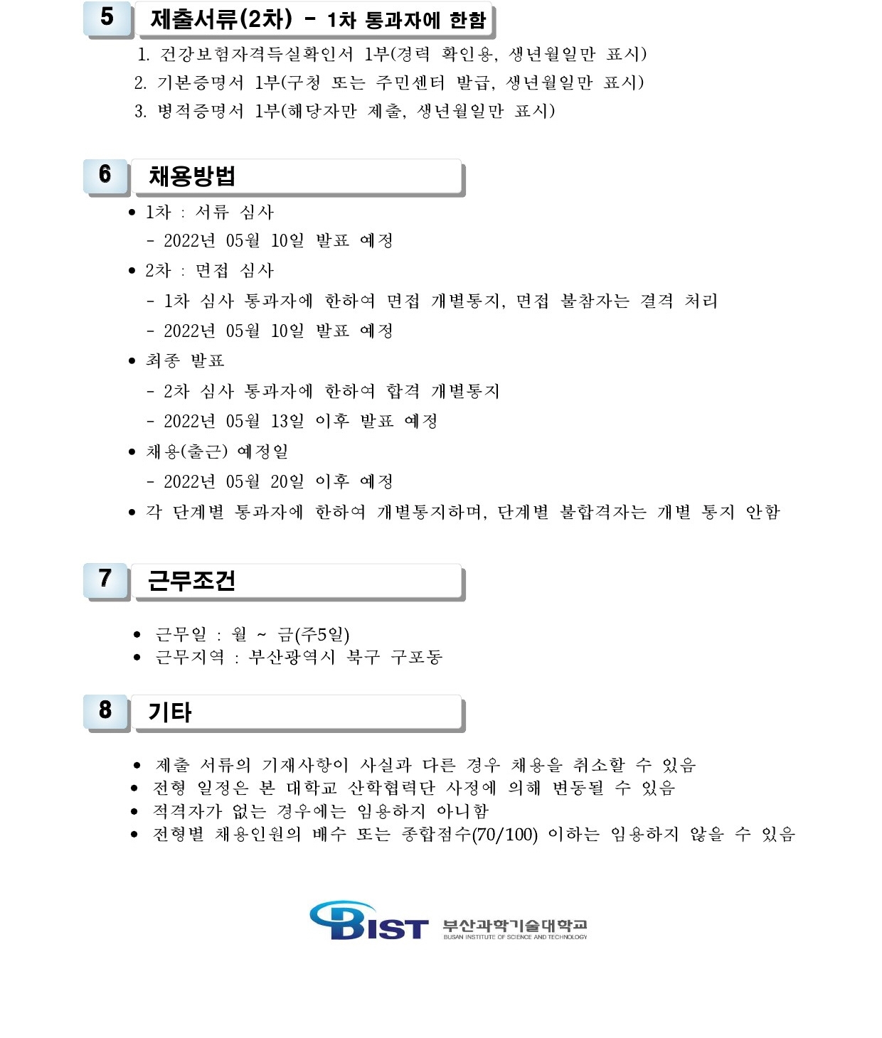 HOME > 기타 > 입찰/채용 입찰/채용 제목 [채용] 산학협력단 듀얼공동훈련센터(일학습병행제사업) 전담 계약직 직원 채용 등록일 2022.04.25 10:14:02 작성자 행정지원처 첨부파일 1-2. 공고문(산단-듀얼공동훈련센터-일학습).pdf [179.23 KB]1-3. 지원서 및 자기소개서(산단-듀얼공동훈련센터-일학습).hwp [21.50 KB] 조회 1790 이전글 [채용] 대학 중소기업계약학과사업 전담 계약직 직원 채용 공고 다음글 [채용] 부산과학기술대학교 계약직 직원 채용 공고 (환경미화) 목록 비밀글 비밀번호 입력 폼 비밀번호 입력 비밀번호를 입력하여 주세요. 관리자는 확인버튼만 누르시면 됩니다. 비밀번호 잘못된 비밀번호입니다. 비밀번호를 다시 입력해주세요. 확인