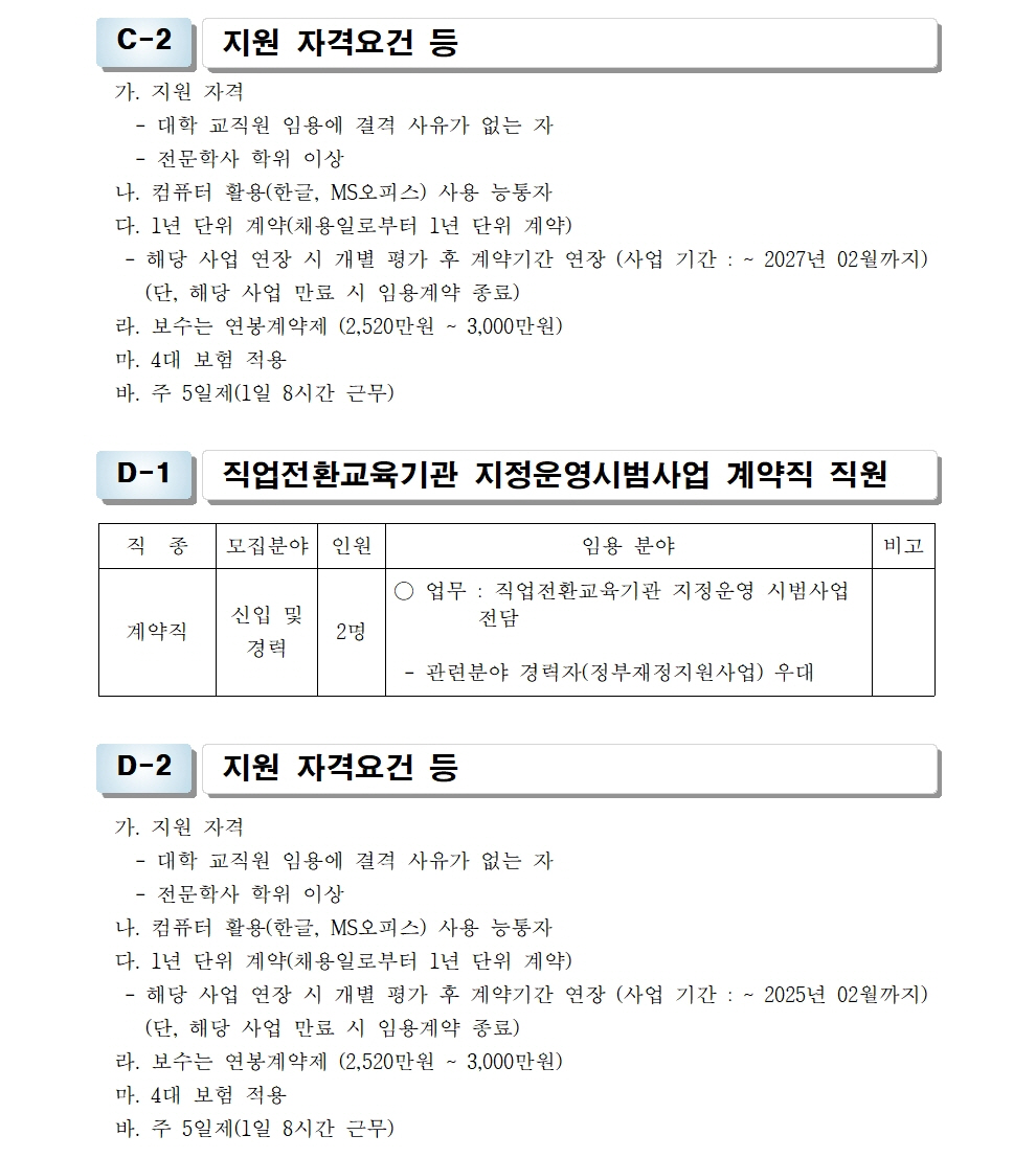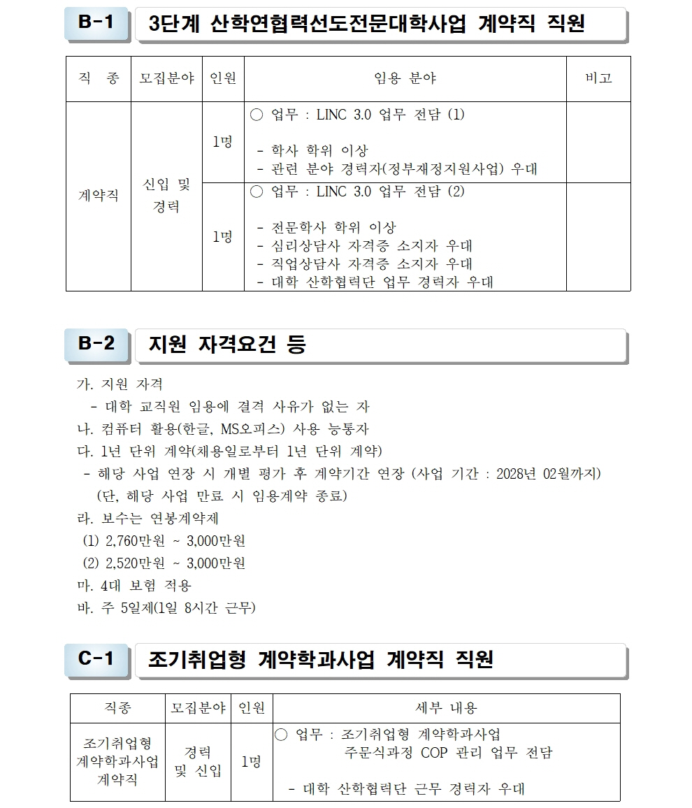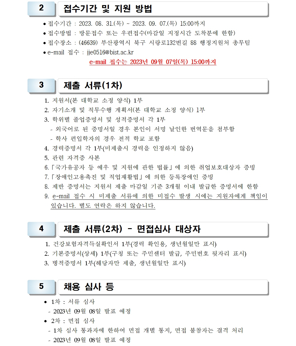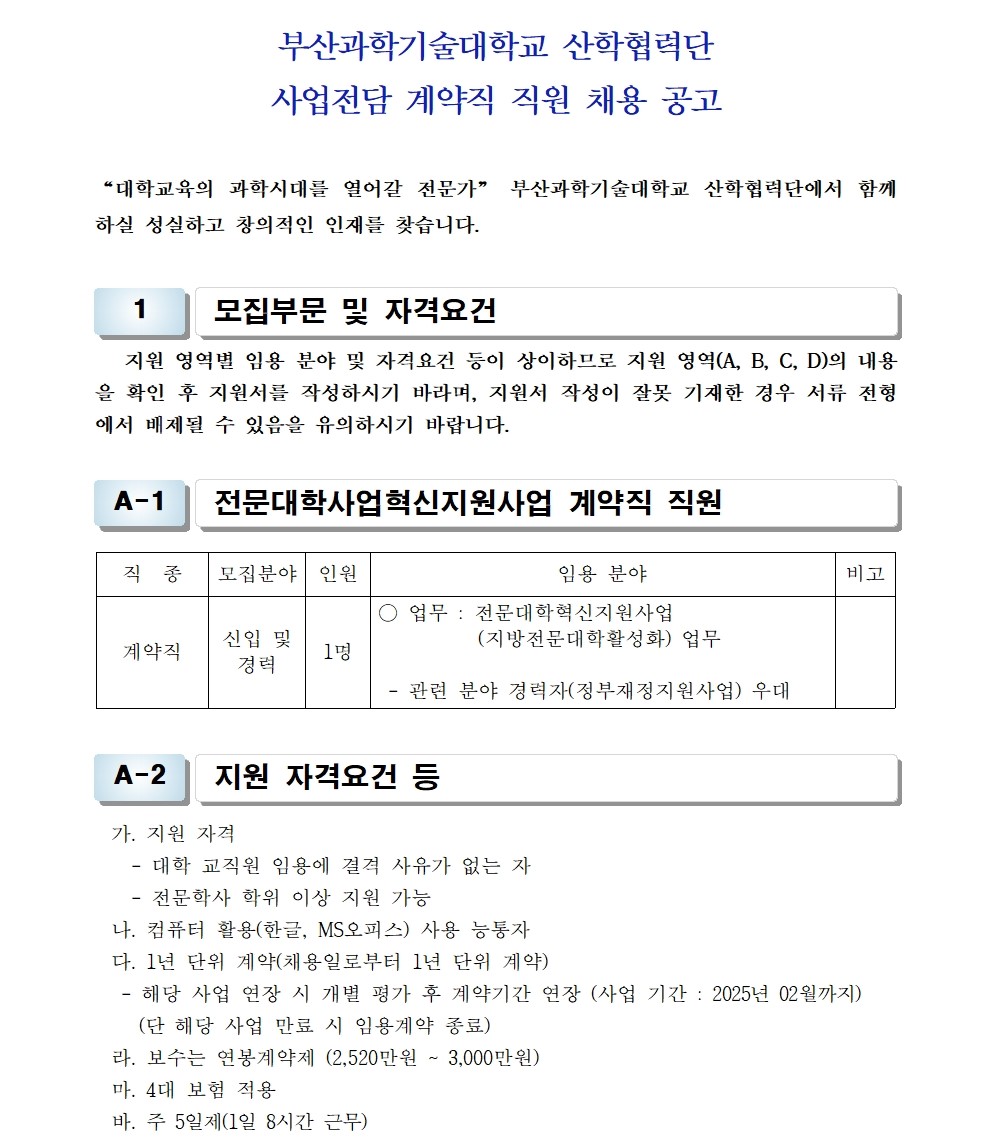 HOME > 기타 > 입찰/채용 입찰/채용 제목 [채용] 산학협력단 사업전담 계약직 직원 채용 공고 등록일 2023.08.24 14:08:09 작성자 행정지원처 첨부파일 1-3. 지원서 및 자기소개서(산학협력단).hwp [50.00 KB] 조회 1711 이전글 [채용] 2023학년도 2학기 교원(강사) 초빙 공고(4차) 다음글 [채용] 비정년 전임교원 초빙 공고 목록 비밀글 비밀번호 입력 폼 비밀번호 입력 비밀번호를 입력하여 주세요. 관리자는 확인버튼만 누르시면 됩니다. 비밀번호 잘못된 비밀번호입니다. 비밀번호를 다시 입력해주세요. 확인