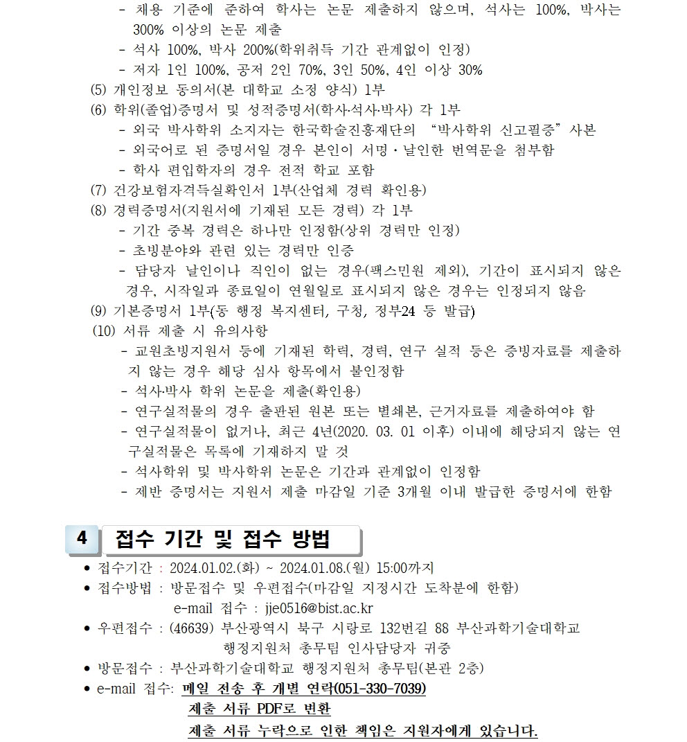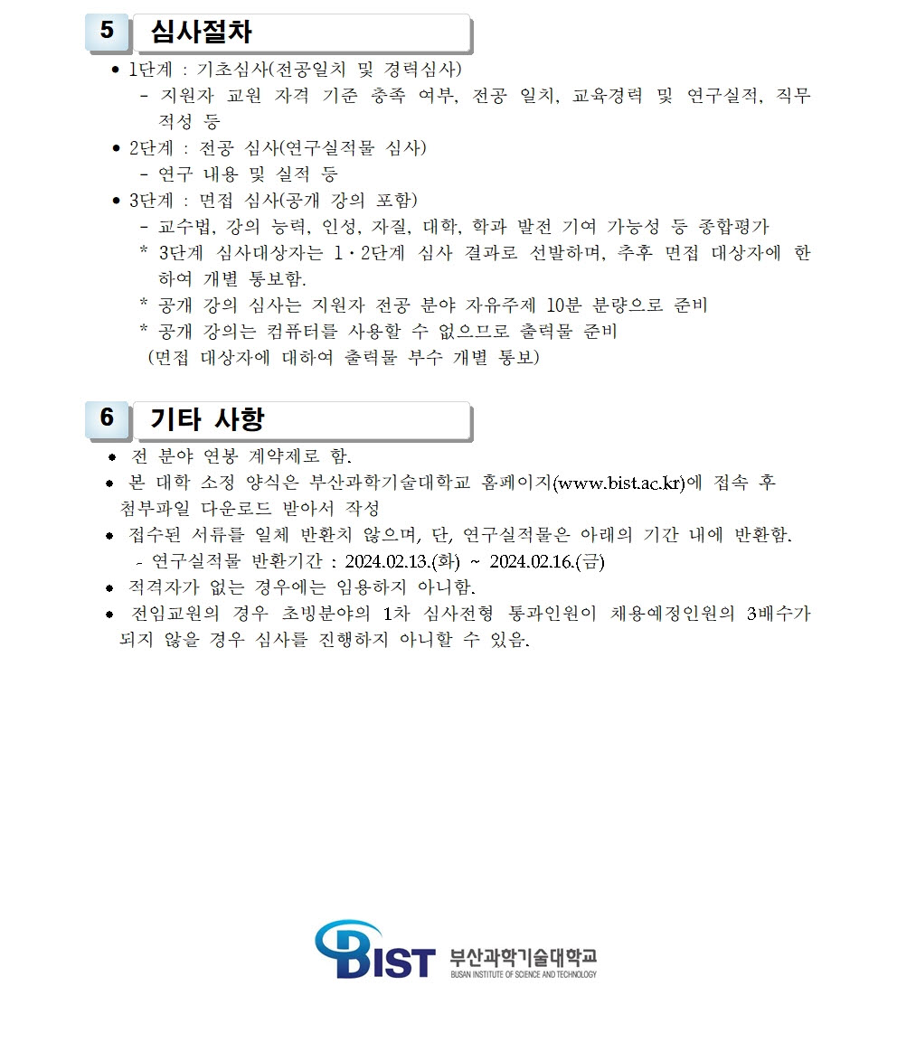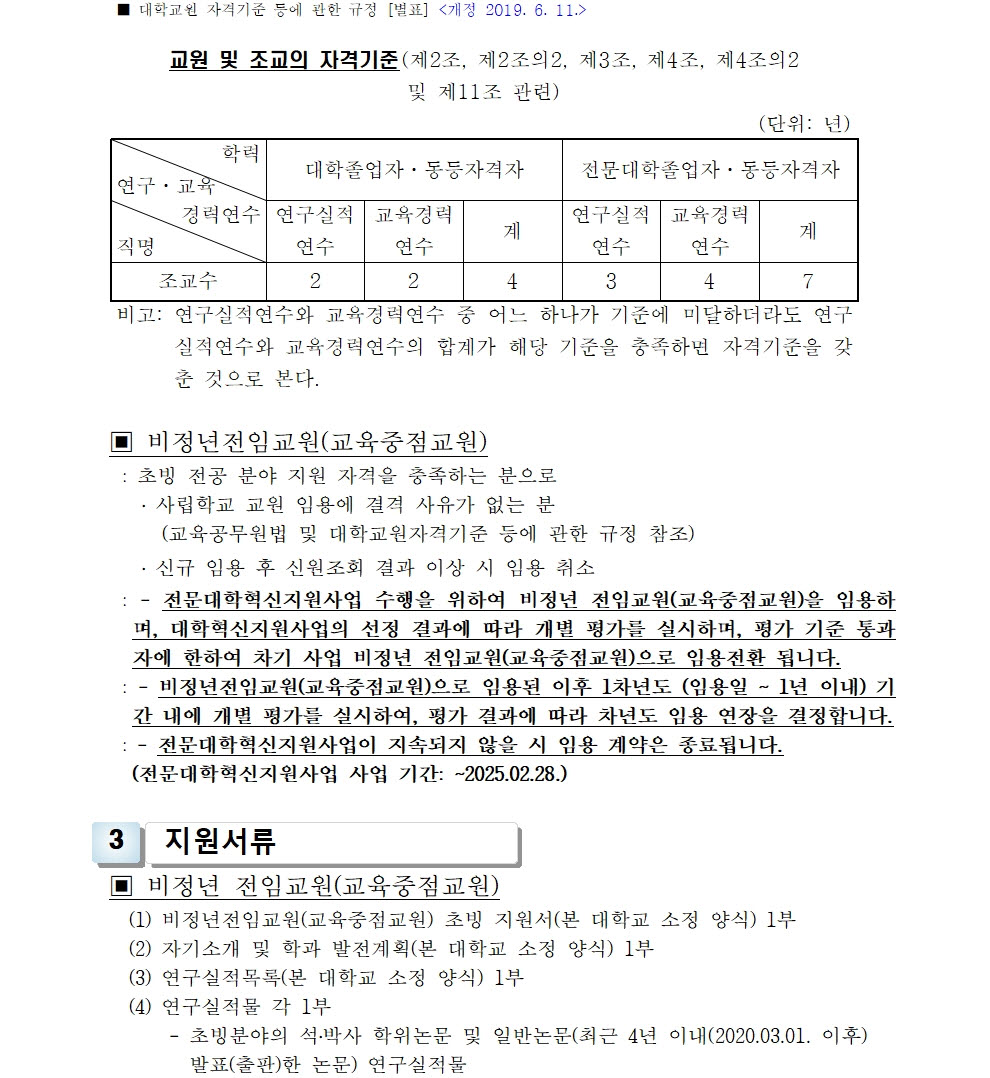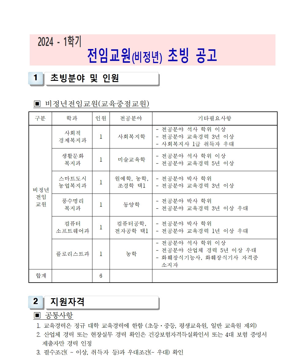 HOME > 기타 > 입찰/채용 입찰/채용 제목 [채용] 비정년 전임교원 초빙 공고 등록일 2023.12.22 10:12:14 작성자 행정지원처 첨부파일 1-1-3-가 비정년전임교원 구비서류.zip [334.55 KB] 조회 1789 이전글 [입찰] 산업체 맞춤형 DX직업전환 기업요구직무분석 및 과정개발 컨설팅 용역(긴급) 다음글 [입찰] DX아카데미 전용 플랫폼 및 디지털-뱃지 시스템 구축(긴급) 목록 비밀글 비밀번호 입력 폼 비밀번호 입력 비밀번호를 입력하여 주세요. 관리자는 확인버튼만 누르시면 됩니다. 비밀번호 잘못된 비밀번호입니다. 비밀번호를 다시 입력해주세요. 확인