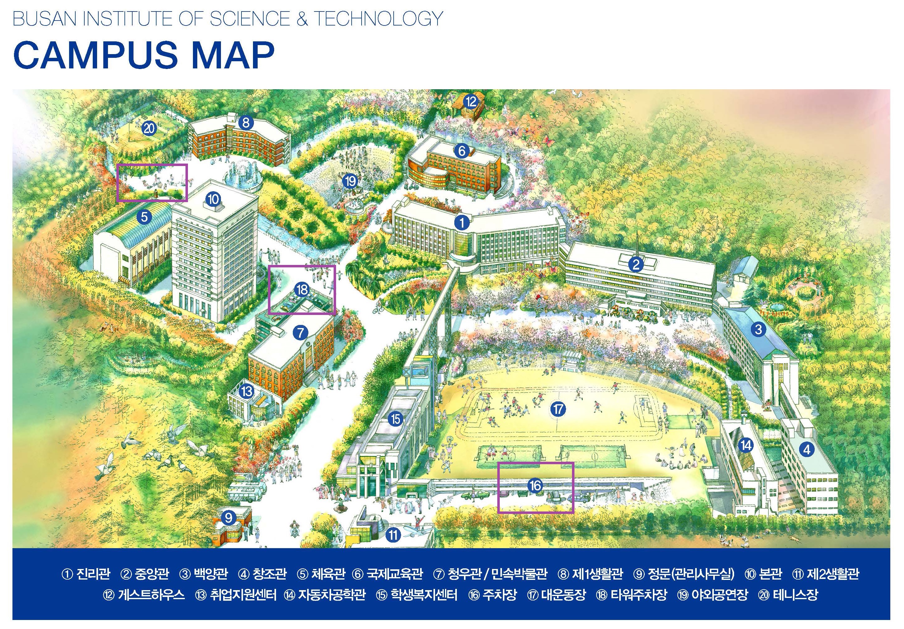 주차가능 | - 주차 타워 - 운동장 지하 주차장 - 체육관 위 주차라인 설치면 - 건물 주위 주차라인 설치면 |