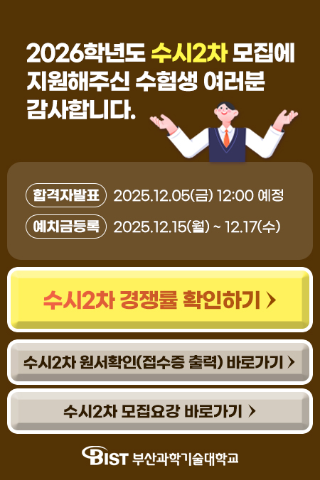 2026학년도 부산과학기술대학교 입학전형 시행계획 변경 안내